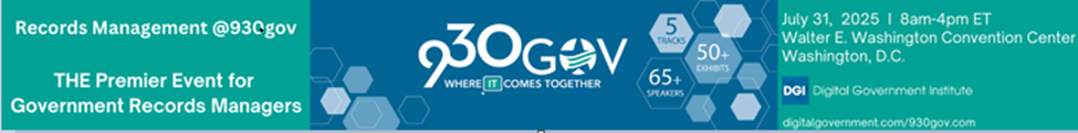 Digital Government Institute’s Records Management @930gov Conference and Tradeshow is the premiere event for government records management and information management professionals to learn and share industry best practices. Key government and industry experts will gather at the end of July to discuss available solutions, policy updates/changes and review examples of successful electronic records programs.